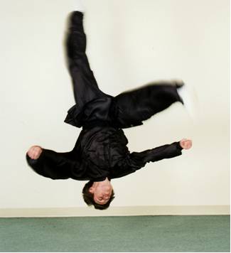 Fanguntiaoyiao also known as Zhaji (雜技 Acrobatics). The program is divided into seven training groups. It’s based on the traditional Kung Fu styles like Di Tang Quan (地躺拳 Ground Tumbling Boxing) and Cui Ji Quan (醉酒拳 Drunken Boxing); those styles are known by difficult acrobatic stunts, and its techniques have a much higher degree of difficulty. This class focuses on tumbling, falling, rolling, and looping exercise, high jump and performing extremely difficult tricks. As for martial arts aspects, there are attacking blows, punches, kicks, takedowns and lock controls, hidden in the movements of tumbling, turning, somersaulting,